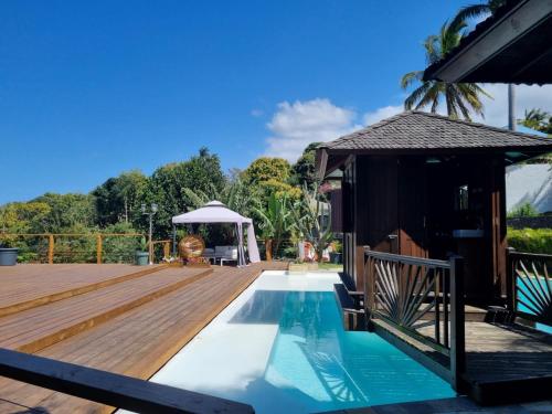 Grande Villa et Bungalows dans un Jardin créole avec Piscine et Vue Panoramique位于Fiague,距离Saga du Rhum有12公里,距离波旁高尔夫俱乐部有13公里,提供免费WiFi和空调。客人可以使用带室外泳池的花园。内部提供私人停车位。