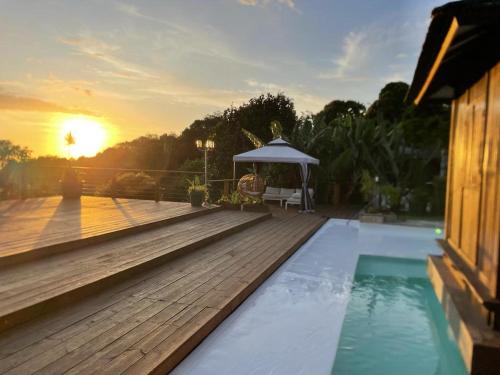 Grande Villa et Bungalows dans un Jardin créole avec Piscine et Vue Panoramique配备烧烤设施。
