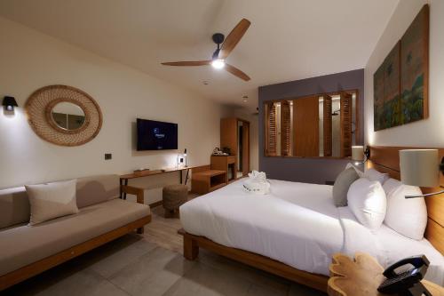 这家酒店为客人提供空调客房,配有书桌、咖啡机、迷你吧、保险箱、平板电视、露台以及带淋浴设施的私人浴室。所有客房都配备电热水壶。部分客房拥有阳台,其他客房享有海景。Papangue Hôtel & Spa的客房提供休息区。