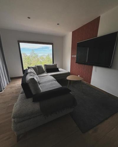 这家度假屋提供2间卧室,配有1间带热水浴池和浴缸的浴室。这家度假屋配备山景露台,也配有卫星频道平板电视、1间带淋浴设施和免费洗浴用品的浴室以及带冰箱、洗碗机和烤箱的设施齐全的厨房。
