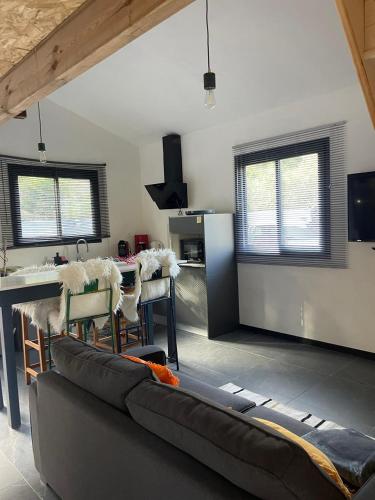 这家度假屋提供露台,享有山景,配有1间卧室、起居室、平板电视、带冰箱和洗碗机的设施齐全的厨房以及1间带淋浴设施的浴室。这家度假屋也拥有休息区和1间浴室。