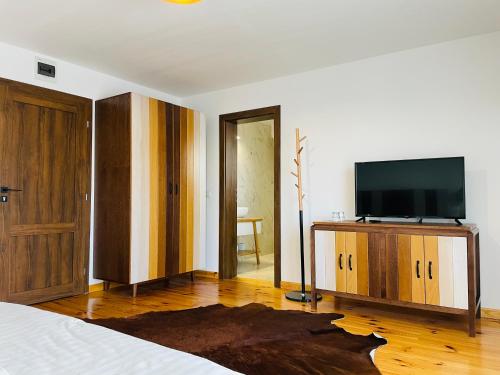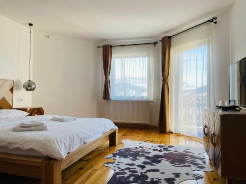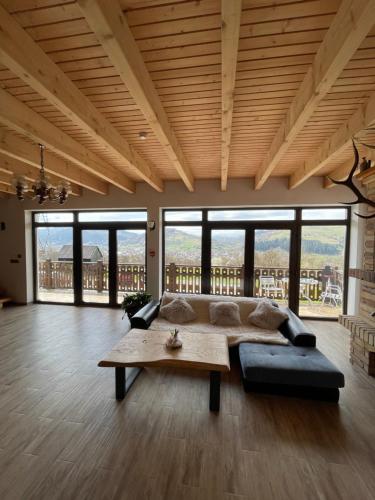 PANORAMIC Sus In Deal坐落于下维谢乌乡,距离Ieud木制教堂有17公里,配备花园、免费私人停车位、共用休息室和露台。这家住宿禁烟,距离Poenile Izei木制教堂有29公里。