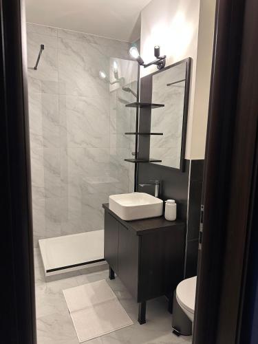 这家公寓配有1间卧室、起居室、带冰箱和咖啡机的设施齐全的厨房以及1间带淋浴设施的浴室。这家公寓也配备1间浴室。