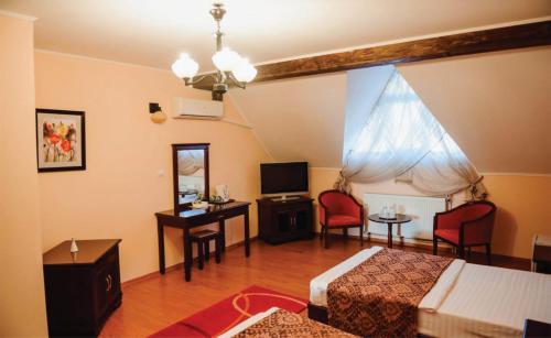 客房均配备空调、带卫星频道的平板电视、冰箱、电热水壶、淋浴设施、免费洗浴用品和书桌。这家旅馆的客房配有带浴缸和吹风机的私人浴室,也提供免费WiFi。部分客房享有市景。Pensiunea La Cetate的每间客房都配有床上用品和毛巾。