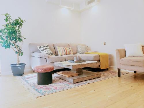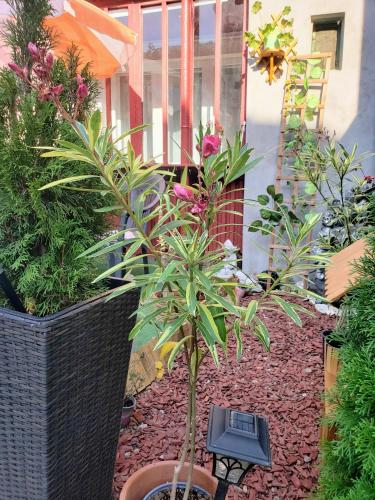 这家公寓提供露台,享有花园景,拥有1间卧室、起居室、平板电视、带冰箱的设施齐全的厨房以及1间带淋浴设施的浴室。这家公寓还配备休息区、洗衣机以及1间带免费洗浴用品的浴室。