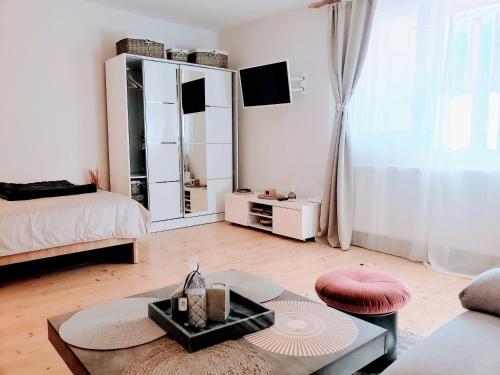 Cosy Studio-House with Terrace坐落于Mureş的特尔古穆列什,配有阳台。这家公寓提供花园和免费WiFi。