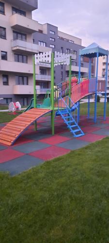 Grey Residence Apartament配备阳光露台和儿童游乐场供客人使用。