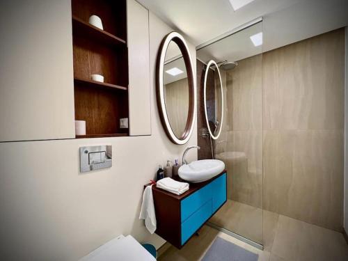 这家空调公寓配有1间卧室、起居室、带冰箱和咖啡机的设施齐全的厨房以及1间带淋浴设施和吹风机的浴室。这家公寓也为客人提供休息区和1间浴室。