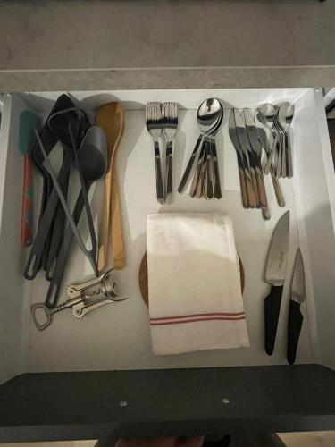这家空调公寓配有1间卧室、起居室、带冰箱和咖啡机的设施齐全的厨房以及1间带浴缸和免费洗浴用品的浴室。这家公寓还配备休息区、洗衣机以及1间带吹风机的浴室。
