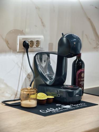 The spacious 1-bedroom apartment is equipped with a living room with a flat-screen TV with satellite channels, a fully equipped kitchen, and 2 bathrooms with bath. Additional in-room amenities include wine or champagne.