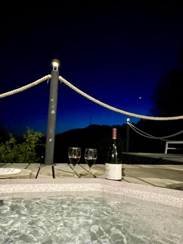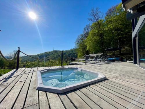 这家小木屋提供温泉浴池。