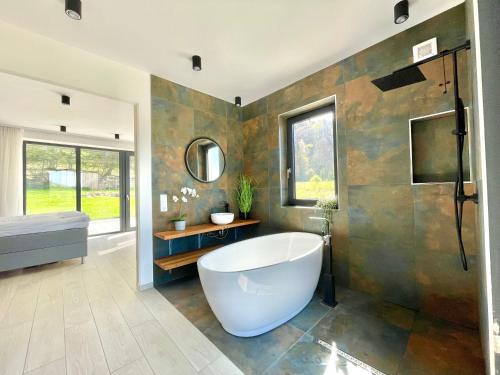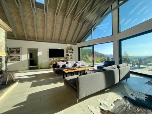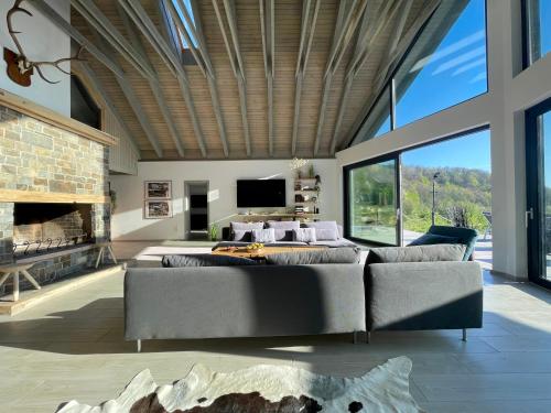 这家空调小木屋配有6间卧室、起居室、带冰箱和咖啡机的设施齐全的厨房以及5间带淋浴设施和热水浴池的浴室。这家小木屋还配备带卫星频道的平板电视以及5间带浴缸的浴室。