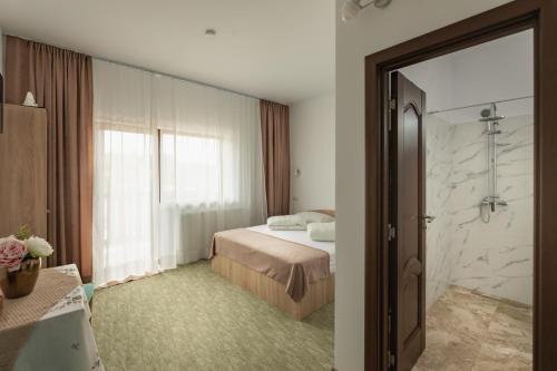 这家旅馆的房间均配有休息区、带有线频道的平板电视、厨房、用餐区以及带免费洗浴用品、淋浴设施和吹风机的私人浴室。客房拥有咖啡机。部分客房还提供阳台,其他客房享有花园景。Pensiunea Trei Stejari的所有客房都提供床上用品和毛巾。