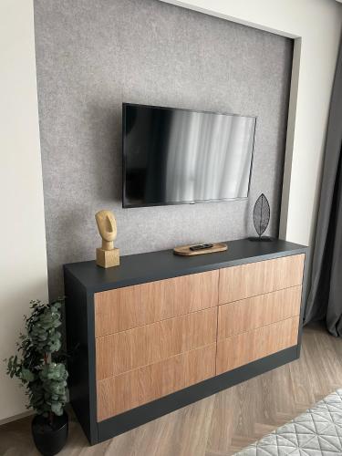 这家公寓配有1间卧室、1间浴室、床上用品、毛巾、带有线频道的平板电视、用餐区、设施齐全的厨房以及市景阳台。这家空调公寓还提供洗衣机以及1间带淋浴设施和浴缸的浴室。