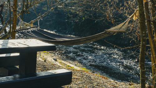 住宿内部配备露台。客人可以在这家小木屋附近体验垂钓和骑行。