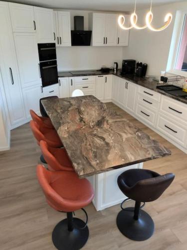 这家别墅配有2间卧室、起居室、带冰箱和咖啡机的设施齐全的厨房以及2间带淋浴设施和吹风机的浴室。这家别墅还配备平板电视、休息区、洗衣机以及2间带浴缸的浴室。