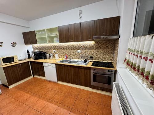 这家旅馆的每间客房都配备休息区、带卫星频道的平板电视、厨房、用餐区以及带免费洗浴用品、淋浴设施和吹风机的私人浴室。Pensiunea Doina Sacele的部分客房享有市景。所有客房都提供咖啡机。这家住宿的所有客房都配有床上用品和毛巾。
