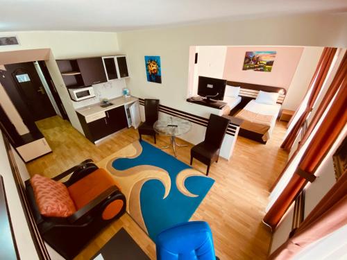 Hotel Zimbru酒店坐落在Iulius Mall购物中心正对面,距离雅西(Iasi)市中心有不到5分钟车程,提供带小厨房和免费网络的现代化一室公寓、餐厅、酒吧以及健身中心。