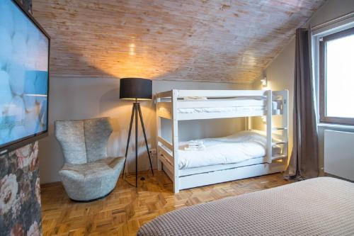这家空调度假屋配有4间卧室、起居室、带冰箱和咖啡机的设施齐全的厨房以及4间带淋浴设施和吹风机的浴室。这家度假屋也配有休息区和4间浴室。