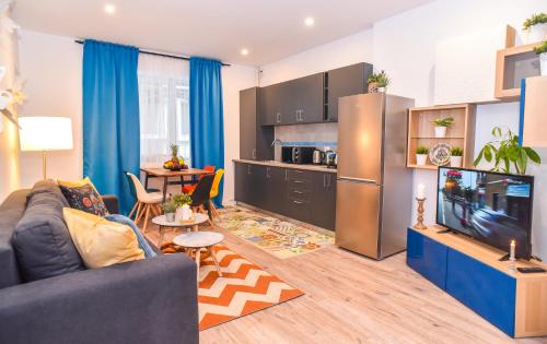 公寓提供厨房、起居室、平板电视,以及带微波炉、咖啡机、烤面包机和水壶的厨房。部分公寓享有河流、公园和罗马尼亚人民宫(Palace of the Parliament)的景致。