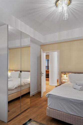 Crown Penthouse - Luxurious, Spa & Vista位于布加勒斯特,地处中心,配备spa浴缸,享有市景。这家公寓提供带露台和免费WiFi的客房。