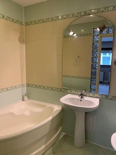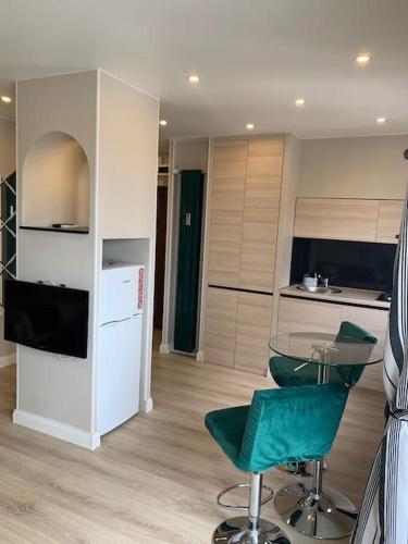 这家空调公寓配有1间卧室、起居室、带冰箱和电热水壶的设施齐全的厨房以及1间带浴缸或淋浴设施和吹风机的浴室。这家公寓还配备休息区、洗衣机以及1间带拖鞋的浴室。