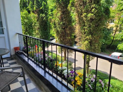 这家公寓提供阳台,享有花园景,配有1间卧室、起居室、平板电视、带冰箱和烤箱的设施齐全的厨房以及1间带淋浴设施的浴室。1间浴室提供免费洗浴用品。