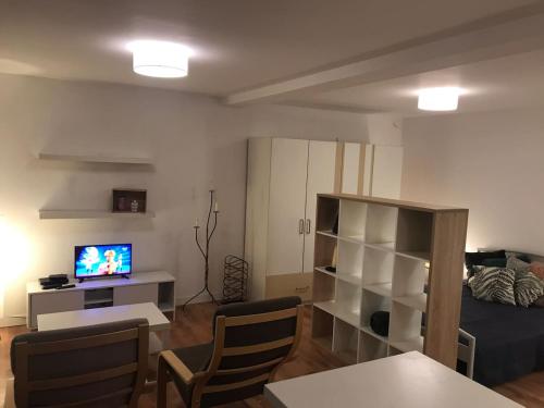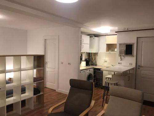 这家公寓提供1间卧室、1间浴室、床上用品、毛巾、带卫星频道的平板电视、用餐区、设施齐全的小厨房以及花园景露台。住宿配有1间带淋浴设施和浴缸的浴室,配备免费洗浴用品和吹风机。