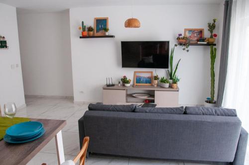 这家空调公寓配有3间卧室、起居室、带冰箱和电热水壶的设施齐全的厨房以及2间带淋浴设施和吹风机的浴室。这家公寓也为客人提供休息区和2间浴室。