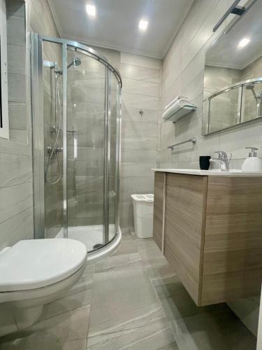 这家空调公寓配有1间卧室、起居室、带冰箱和咖啡机的设施齐全的厨房以及1间带淋浴设施和吹风机的浴室。这家公寓也配有1间浴室。