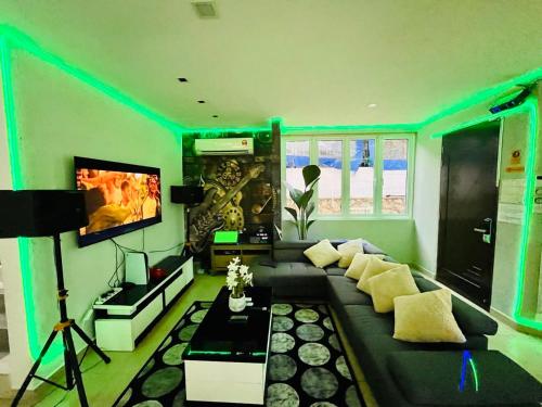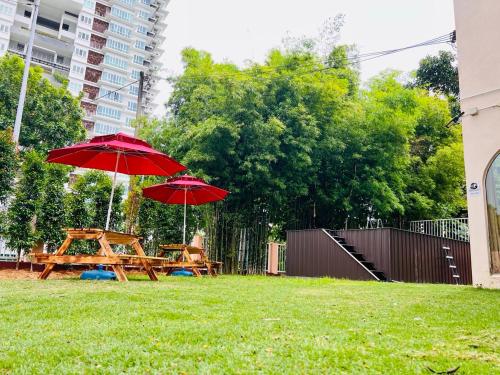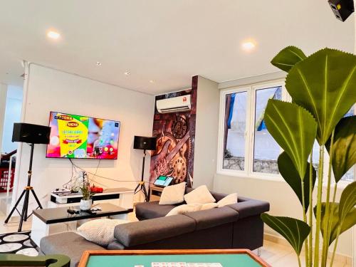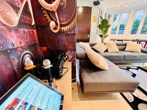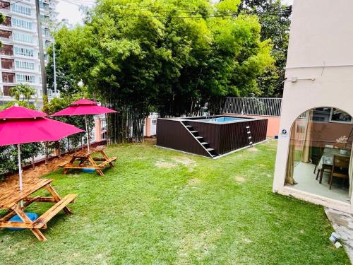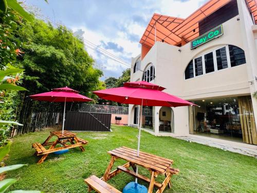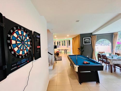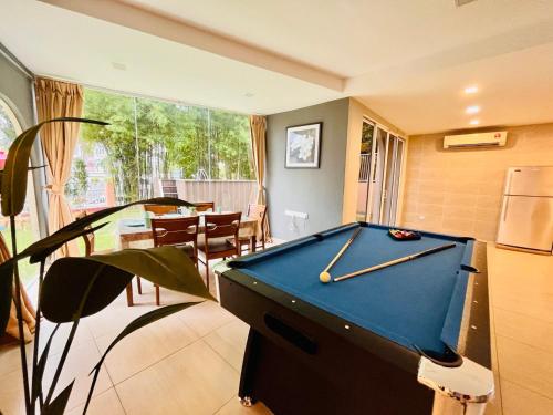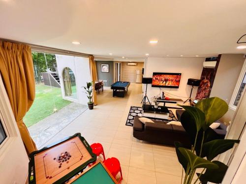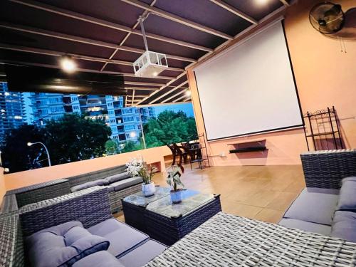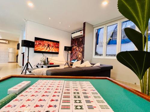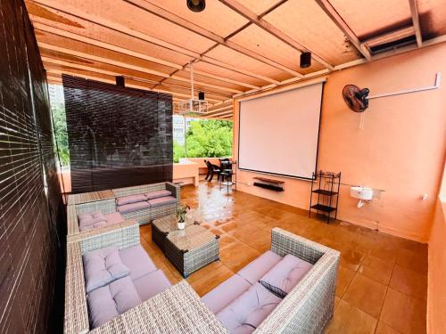 Holiday Villa by StayCo- Swimming Pool - Karaoke - BBQ - Event space - 2 mins drive to beach - center of tourist location位置便利,位于丹绒武雅,配备室外泳池和干洗服务,距离丹绒邦加海滩(Tanjung Bungah Beach)有8分钟步行路程,距离丹绒道光海滩(Tanjung Tokong Beach)有不到一公里。这家住宿的客人可以使用庭院、桌球台、免费私人停车位和免费WiFi。