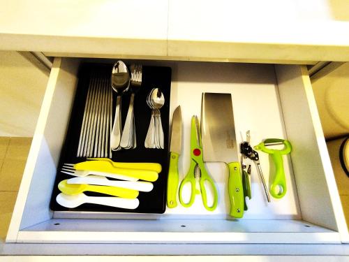 这家空调公寓配有2间卧室、起居室、带冰箱和电热水壶的设施齐全的厨房以及2间带淋浴设施和吹风机的浴室。2间浴室配有浴缸,也为客人提供拖鞋,提供毛巾和床上用品。