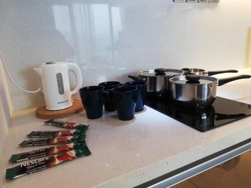 这家2卧室公寓配有起居室、带有线频道的平板电视、带冰箱和微波炉的设施齐全的厨房以及1间带吹风机的浴室。这家公寓配备毛巾和床上用品。