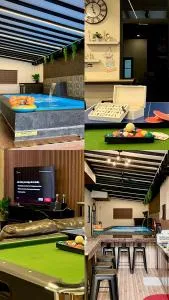 Villa Klebang 25Pax 6Bedroom Indoor Pool Full AirConditioned位于马六甲,距离丹绒克令海滩(Tanjung Kling Beach)仅有2公里,提供共用休息室、酒吧和共用厨房。这家海滨住宿的客人可以使用露台、乒乓球桌、免费私人停车位和免费WiFi。 这家别墅配有6间卧室以及4间带免费洗浴用品和吹风机的浴室。这家空调别墅还提供平板电视、带冰箱的设施齐全的厨房、休息区、洗衣机以及4间带坐浴盆、淋浴设施和热水浴池的浴室。 客人可以在带室内泳池、桑拿房和热水浴池的康体区或在花园内放松身心。 这家别墅距离巴巴娘惹与文化博物馆有8.6公里,距离Cheng Hoon Teng Temple有8.7公里。巴都伯伦丹机场距离住宿有10公里。 更多
