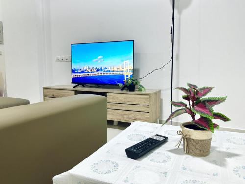 这家空调公寓配有2间卧室、起居室、带冰箱和电热水壶的设施齐全的小厨房以及1间带坐浴盆和淋浴设施的浴室。这家公寓还提供平板电视以及1间带吹风机的浴室。