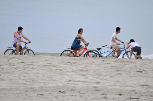 Guests can relax on the beach or enjoy a game of pool. An outdoor hot tub is also available.