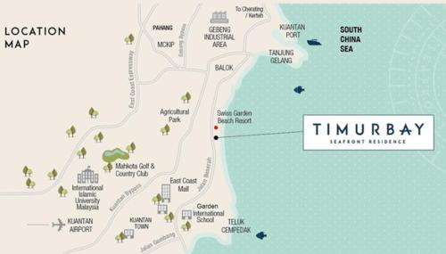 KUANTAN - TIMURBAY SEAFRONT RESIDENCE a距离巴都希淡海滩(Batu Hitam Beach)有几步路,距离比色拉海滩(Beserah Beach)有16分钟步行路程。苏尔坦哈吉艾哈迈德沙阿机场距离住宿有26公里。