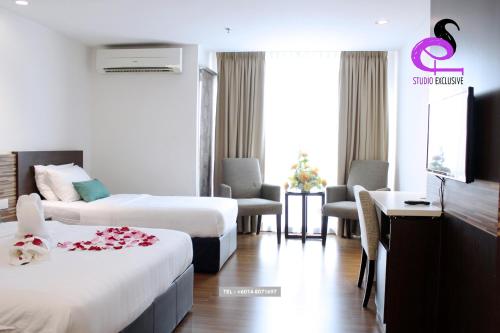 Studio Exclusive (Kota Bharu City Point)旅馆位于哥打巴哈鲁(Kota Bharu),距离手工艺村和工艺品博物馆(Handicraft Village and Craft Museum)有11分钟步行路程,提供免费WiFi和免费私人停车场。旅馆毗邻出租车和巴士站,旅馆可应要求提供24小时机场交通服务。