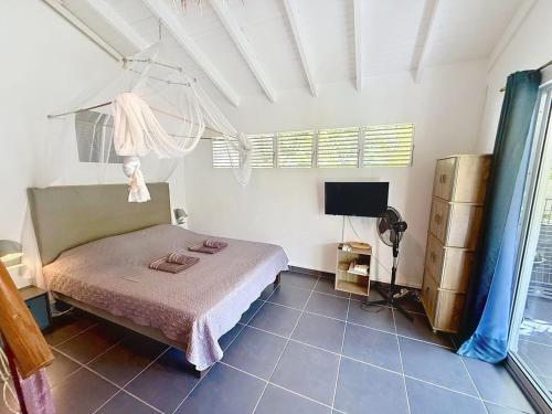 Location saisonnière dans résidence avec piscine坐落于莱特鲁瓦西莱,距离驴湾海滩(Anse a l'Ane Beach)仅有4分钟步行路程,配备海滨住宿、户外游泳池、花园、露台和免费WiFi。内部提供私人停车位。