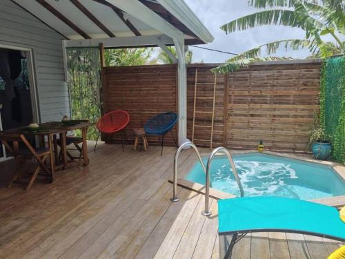 Ginger suite位于勒迪亚芒,配备私人泳池,享有花园景。这家空调住宿距离樱桃海滩(Plage de la Cherry)有2.9公里,为客人提供免费WiFi,内部提供私人停车位。