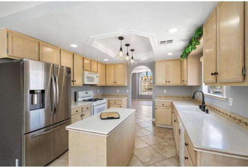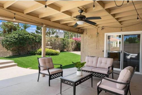 Spacious house with pool at Mission Lake位于沙漠温泉,距离棕榈泉游客中心有15公里。客人可以使用热水浴池。这家自助式度假屋拥有私人泳池、花园和免费私人停车位。