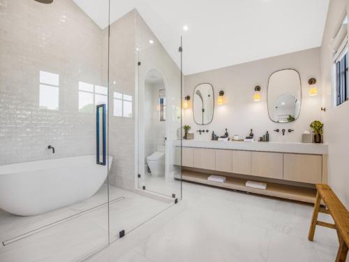 这家空调别墅提供5间卧室以及5间带坐浴盆、淋浴设施和吹风机的浴室。这家别墅配备花园景阳台,也配备电视、5间带浴缸的浴室以及带冰箱、洗碗机和烤箱的设施齐全的厨房。