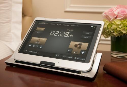 Cream colored rooms boast an iPod docking station at Beverly Hills The Peninsula. A refrigerator and minibar are available in all rooms.