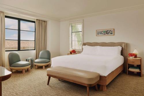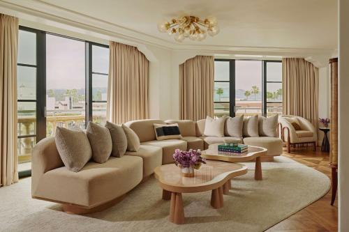 The Maybourne Beverly Hills酒店所有客房均配有42英寸平板卫星电视。所有住客均可24小时使用酒店所有设施和服务。客房还设有休息区,客人可以在独立浴室使用拖鞋。