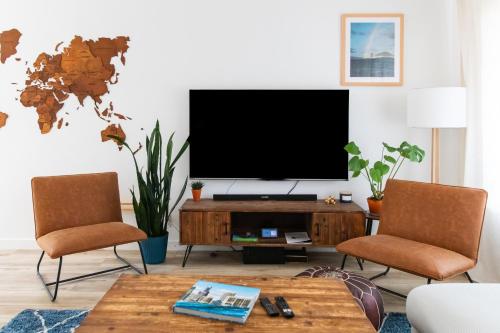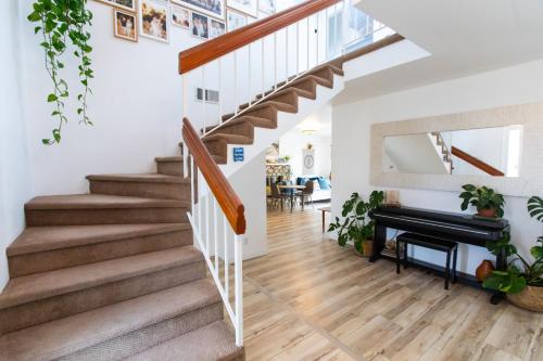 这家度假屋提供庭院,享有海景,拥有3间卧室、起居室、平板电视、带冰箱和洗碗机的设施齐全的厨房以及3间带坐浴盆的浴室。住宿配有3间带淋浴设施和浴缸的浴室,配备免费洗浴用品和吹风机。