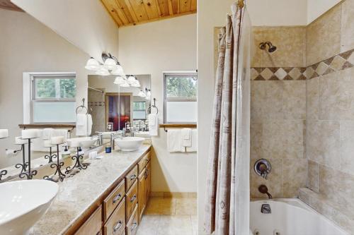 这家度假屋配备4间卧室、5间浴室、床上用品、毛巾、电视、设施齐全的厨房以及山景阳台。5间浴室配有浴缸或淋浴设施和洗衣机,也提供免费洗浴用品和吹风机。