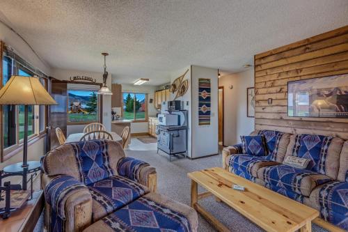 这家度假屋享有山景,提供阳台,配有2间卧室、起居室、卫星频道平板电视、设施齐全的厨房以及2间带淋浴设施和热水浴池的浴室。2间浴室配有浴缸,也拥有吹风机,提供毛巾和床上用品。