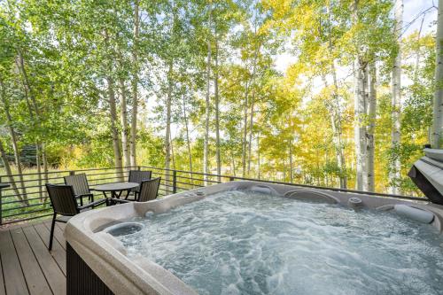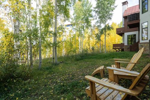 Ski in Ski out Village Creek condo in the Mountain Village Core坐落于特柳赖德的Telluride Mountain Village,配备设施齐全的客房、庭院和免费WiFi。