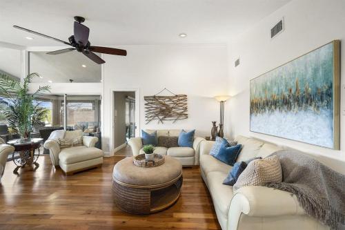 Sunset Canal- Waterfront Heated Salt Pool Golf位于珊瑚角,距离渔民新村有47公里,距离萨尼贝尔商会有25公里,提供免费WiFi和空调。这家自助式度假屋拥有私人泳池、花园和免费私人停车位。