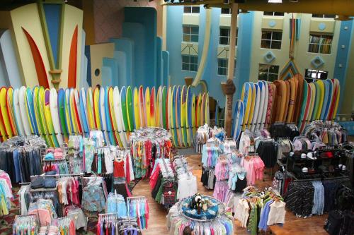 Cocoa Beach Four Points酒店的客房提供有线电视、室内电影和电动游戏,拥有海滩或海浪主题装饰元素。